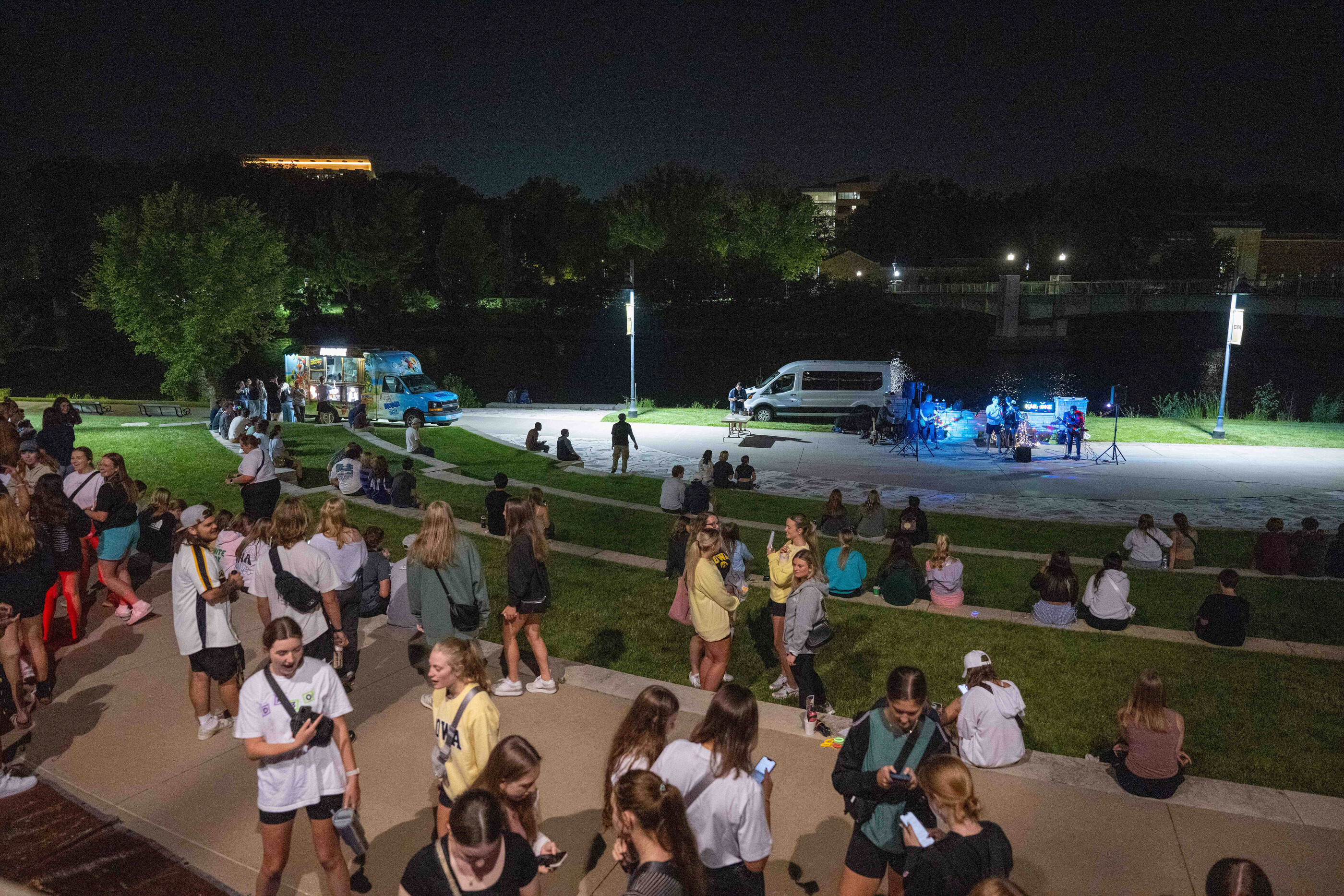 On Thursday nights, the Iowa Memorial Union (IMU) terrace transforms into a vibrant hub of student activity.
